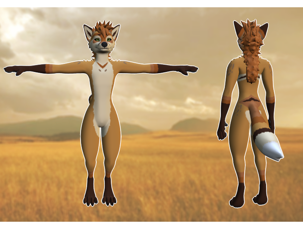Coyote-fox hybrid texture for the Canis Woof VRChat model!